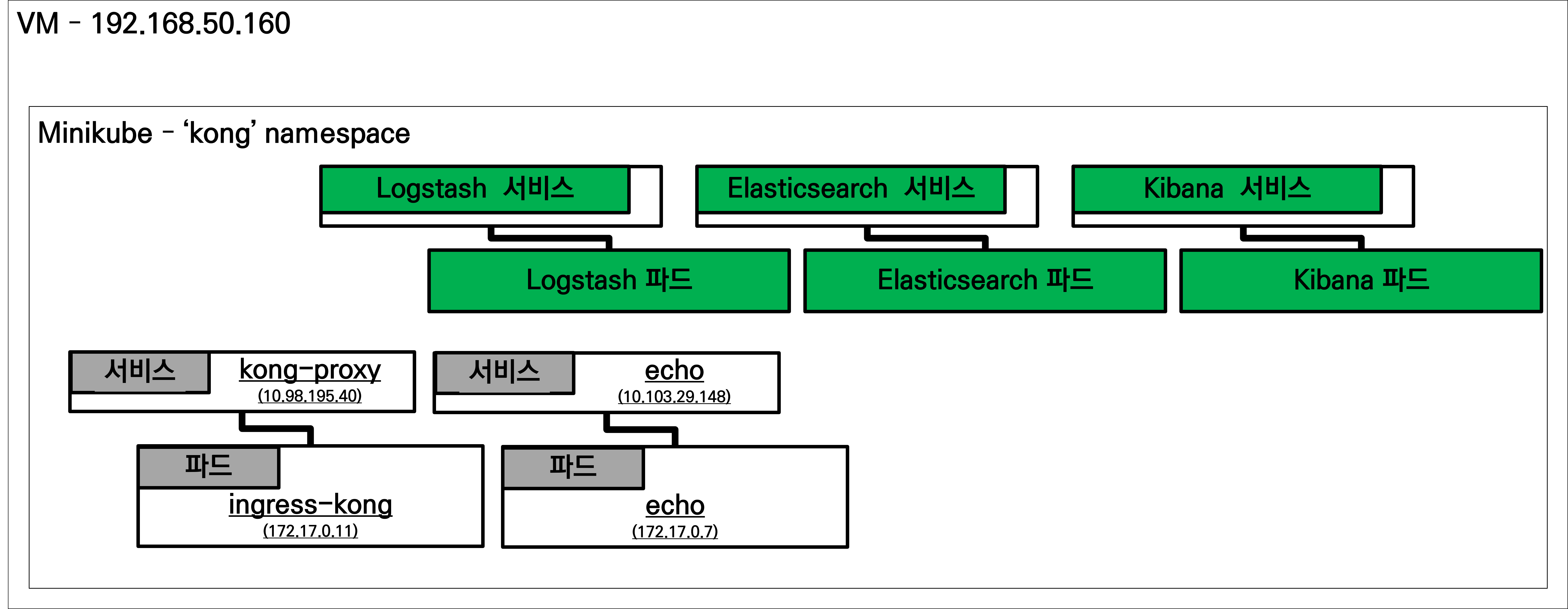 Konga 설치한 것에 이어서 Kong에 API를 날렸을 때 log 데이터를 DB에 저장하기 위해 Elasticsearch, Kibana, Logstash를 Minikube에 설치하는 과정을 작성하겠습니다.Kong 자체 DB인 postgresql과 mysql이나 postgresql을 다른 pod로 생성해서 kong plugin을 이용해서 해보았지만 TCP 연결이 계속해서 실패한다는 log가 떠서 해당 방법으로 log 데이터를 저장하도록 선택하게 되었습니다.
