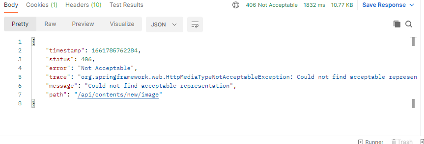 Resolved [org.springframework.web.HttpMediaTypeNotAcceptableException: Could not find acceptable representation]