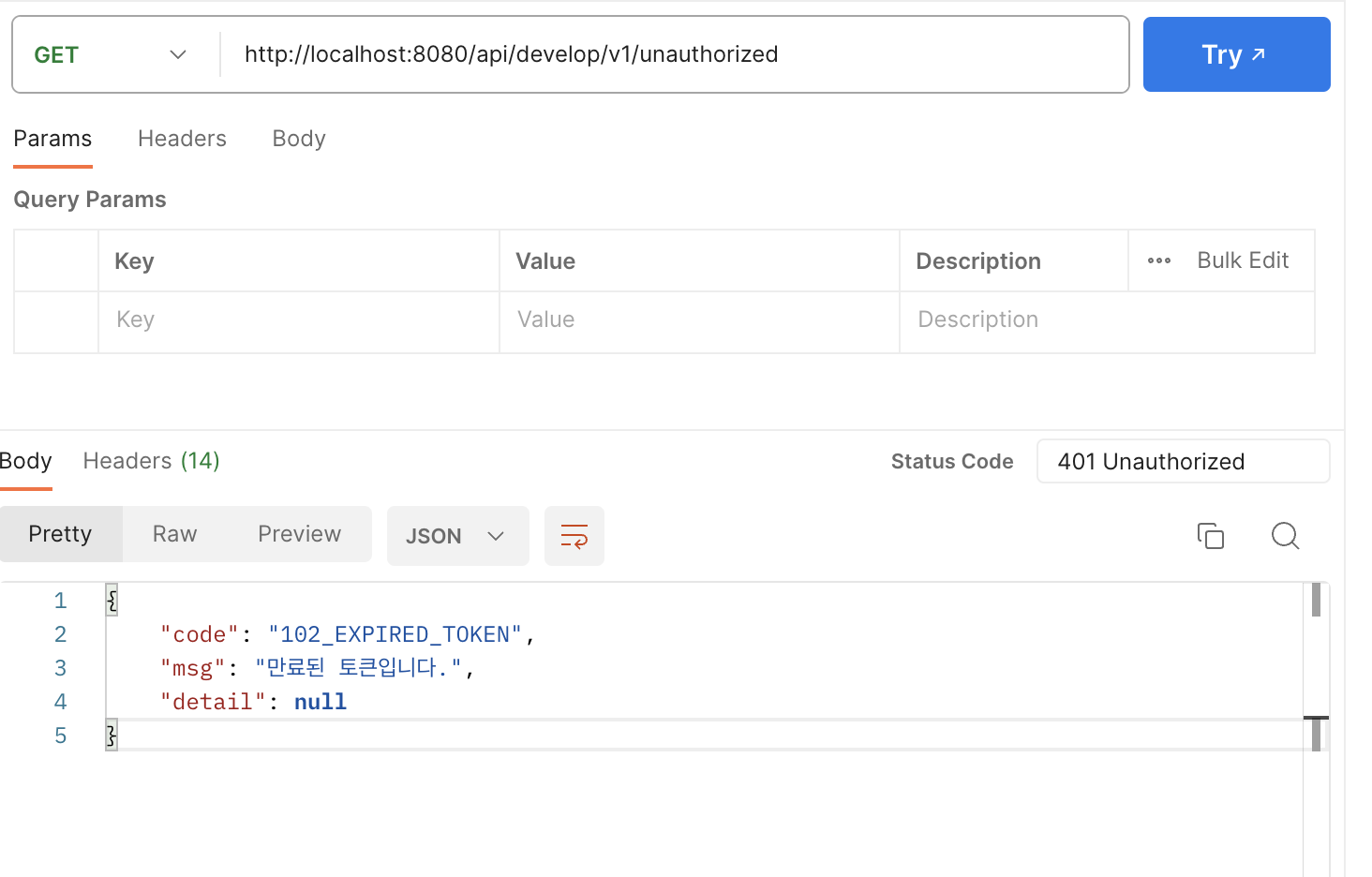 throw new CustomException(HttpStatus.UNAUTHORIZED, ErrorCode.EXPIRED_TOKEN);