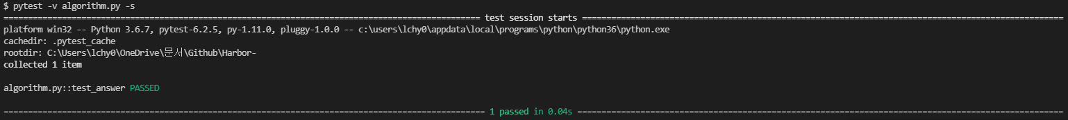 pytest [python 파일 이름] -s # 올바르게 코딩했다면 PASSED가 뜸